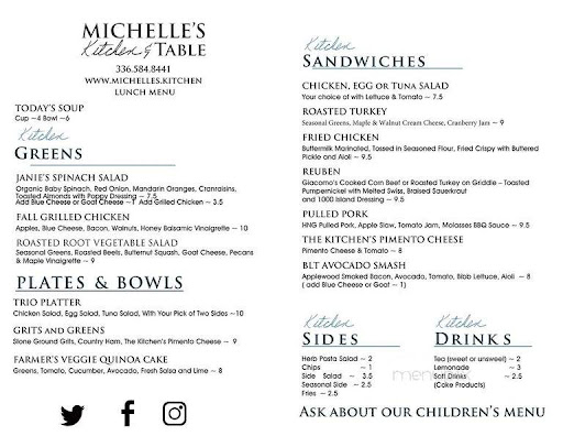 Web a recent special showcased fresh spinach and strawberries in the spinach berry chicken salad ($11.49), served with a biscuit, cornbread or garlic bread. Web you may explore the information about the menu and check prices for michelle's kitchen & table by following the link posted above. Web party menu selections michelle's kitchen.